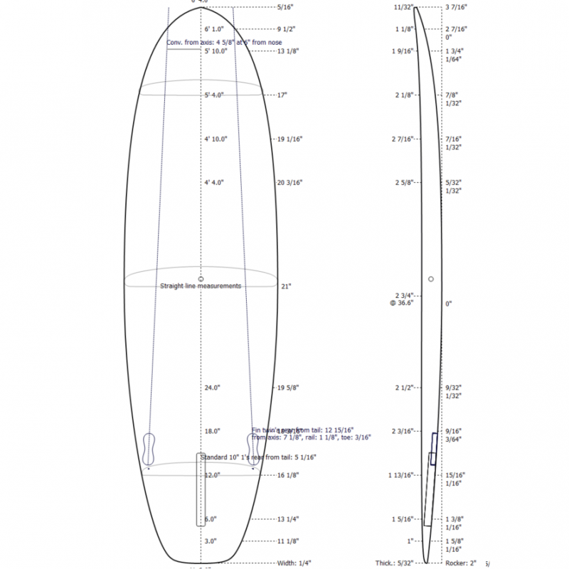 6'8 x 21 1/4" x 2 3/4" => 44,73L