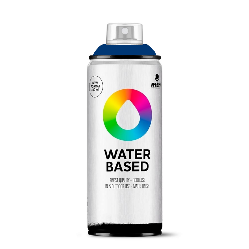 A MTN Water Based 400 é uma tinta spray à base de água adequada para pintura em espuma de poliestireno. Seu baixo teor de solvente reduz o odor. A tinta é solúvel em água durante os primeiros 10 minutos de secagem, podendo ser apagada com água ou retocada com outras técnicas, como um pincel úmido.