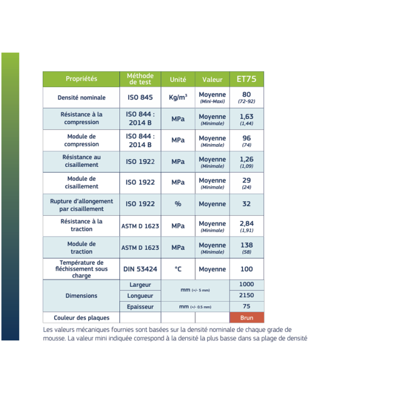 ET FOAM é uma espuma de PVC reticulada com alta resistência à temperatura ambiente e células fechadas, desenvolvida para estruturas sanduíche de "Alto Desempenho" submetidas a altas cargas estáticas e dinâmicas. ET FOAM possui alta resistência à fadiga e alongamento na ruptura, sendo também compatível com resinas termofixas comuns (EPÓXI, POLIÉSTER, VINILÉSTER).