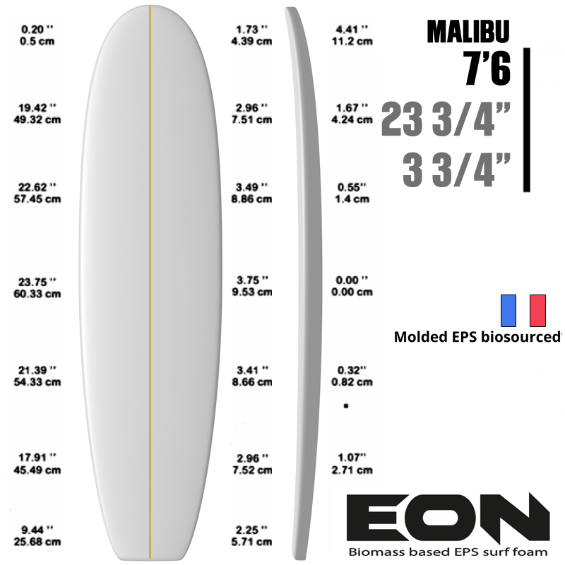 Blocos de espuma MALIBU EON Foam de 7'6" moldados na França (Bretanha), torneamento de compensado de 3 mm