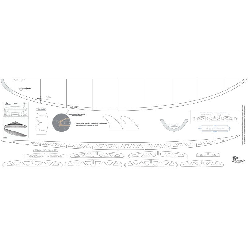 - a estrutura da prancha, cortada a laser em Surfply3L (100% madeira compensada de Paulownia)