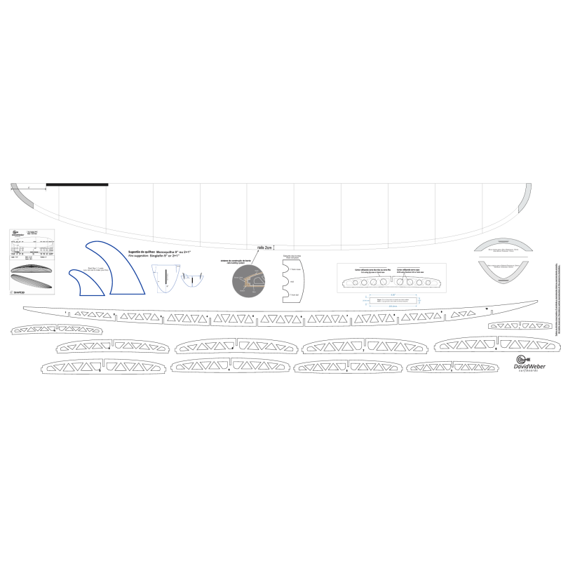- a estrutura da prancha, cortada a laser em Surfply3L (100% madeira compensada de Paulownia)