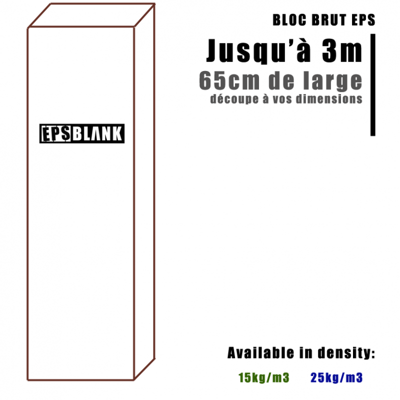 Bloco de espuma EPS bruto com 65 cm de largura