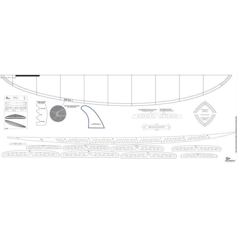 - a estrutura da prancha, cortada a laser em Surfply3L (100% madeira compensada de Paulownia)