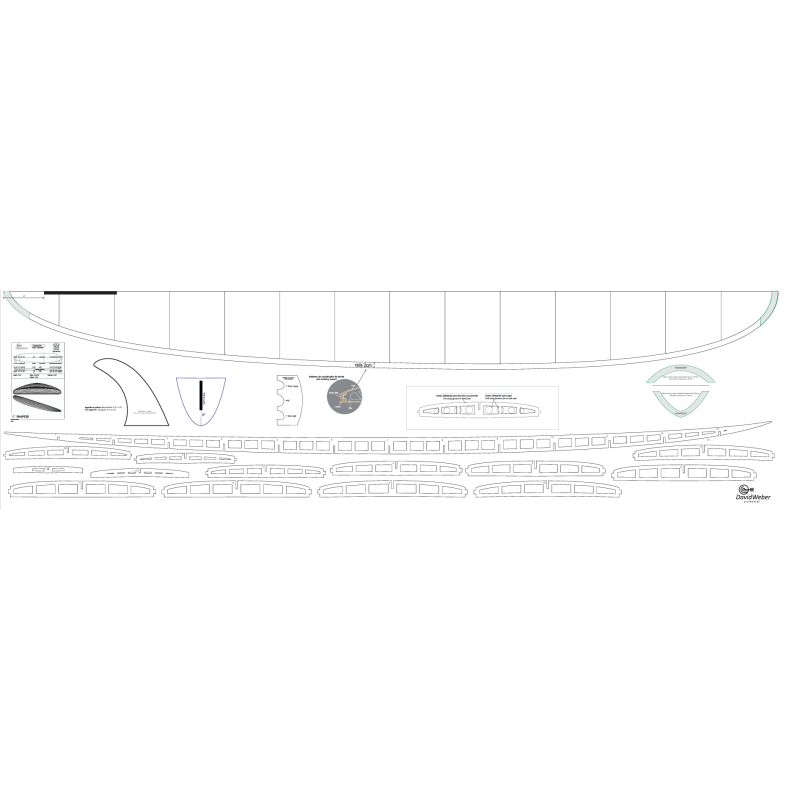 - 5 blocos de reforço em paulownia para as áreas do nariz/cauda e das barbatanas.
