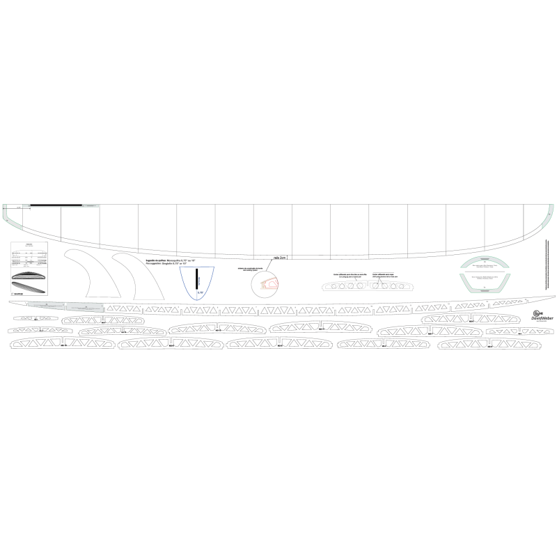 - 5 blocos de reforço em paulownia para as áreas do nariz/cauda e das barbatanas.