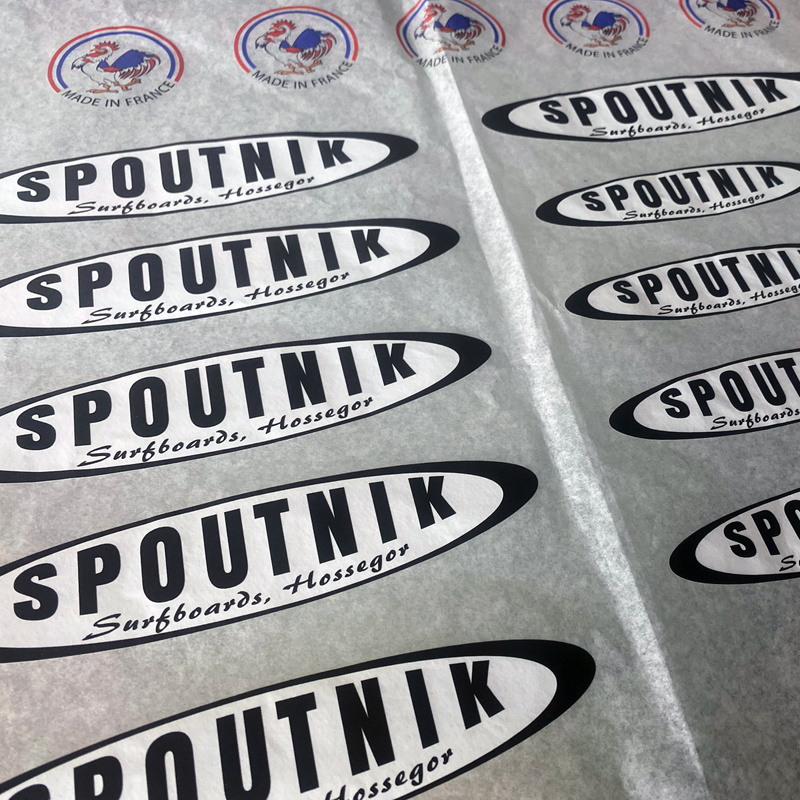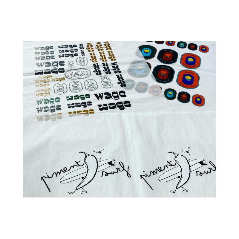 Logotipo personalizado impresso com tintas UV em papel de seda tamanho A3.
