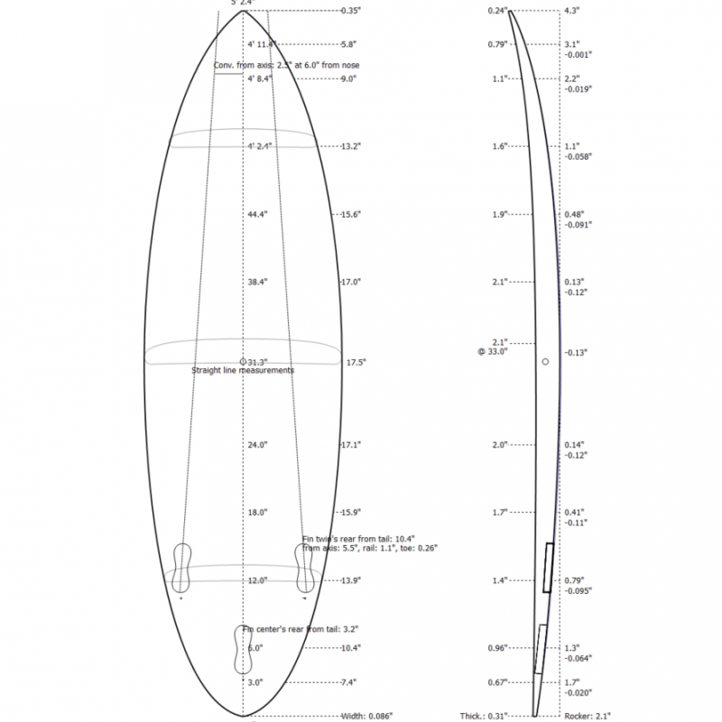 5'4 x 17 1/2" x 2 1/8" => 21,52L