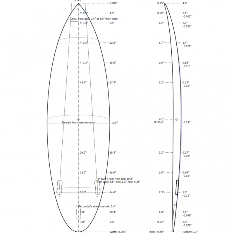 5'11 x 19 1/4" x 2 7/16" => 28,82L