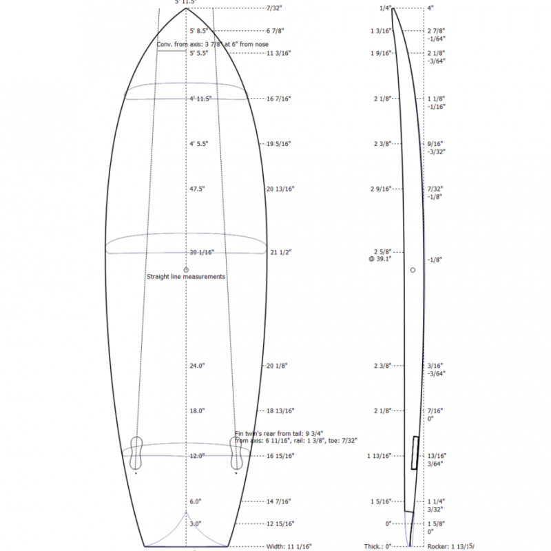 5'10" x 20 7/8" x 2 1/2" => 34,75L